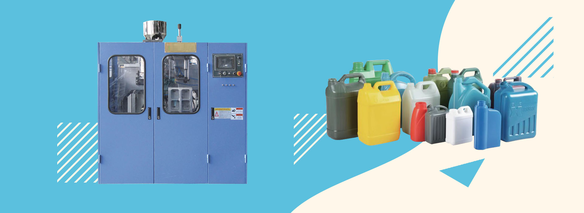 Las materias primas de los equipos de plástico son PET, PP, PE, etc. Según la tecnología de procesamiento de diferentes formas de productos finales, se dividen en varios equipos, como extrusora de plástico, máquina inyectora y máquina sopladora y máquina termoformadora. Se pueden equiparlas con diferentes capacidades de producción según las necesidades del cliente y también los moldes personalizados.